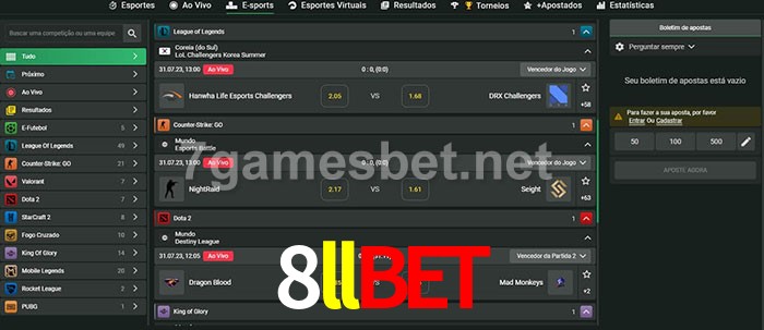 O 8llbet oferece uma grande seleção de opções de apostas em e-sports com probabilidades competitivas